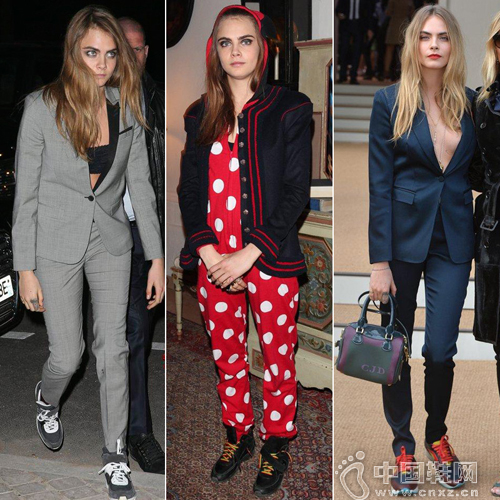 卡拉·迪瓦伊(Cara Delevingne)的穿衣风格与其行事风格一样鬼马,任何风马牛不相及的单品在她身上总能透露出特有的趣味!她对球鞋的钟爱非同一般,不仅拗造型穿,出街穿,甚至还将它穿到了红毯上!万变造型离不开球鞋的她却为自己成功塑造了酷女孩的经典形象。