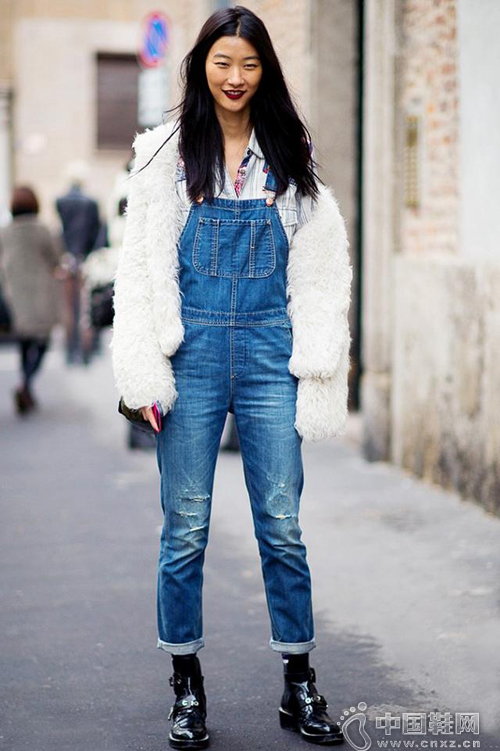 背带裤与短靴是冬天最流行的搭配!绝对不落伍!