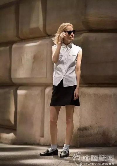 1.【衬衫+短裙+乐福鞋】