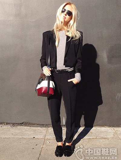 5.【西装外套+短裤+尖头鞋乐福】