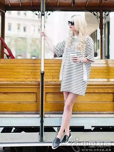 8.【超大条纹T恤+乐福鞋】