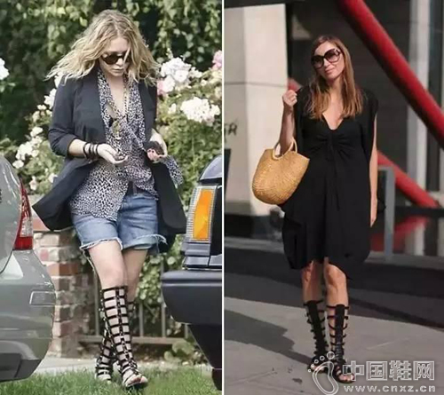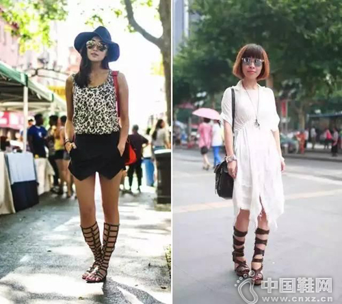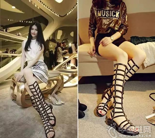 3:扑面而来的束缚感,我个人觉得,好看的及膝罗马鞋,大都是细带子的。但缺点刚刚说了,容易把腿上的赘肉都勒出来。而厚绑带的罗马靴特别是黑色罗马鞋,则有一种很重的压迫感。