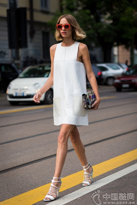 时下正流行的全白造型,搭配任何颜色的凉鞋,效果都比不上白色款。时髦人追求的正是“从头白到脚”的清爽!