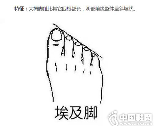 适合的鞋款: 埃及脚适合穿鞋头有点斜度的鞋子,这样可增加服帖度和舒适感。如果和第二根拇指比较来大脚趾比较长,那么要选择鞋尖偏向一侧的斜尖头鞋或者斜头鞋:
