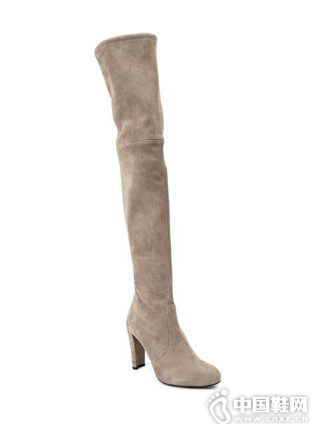 这双鞋长这样,比5050长一截,已经过膝了,后面有个系带,都是麂皮款。