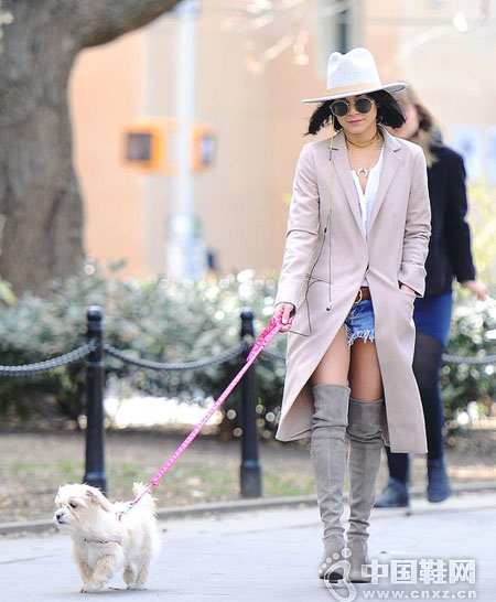 Vanessa Hudgens一身性冷淡色搭配出门遛自己的白色狗狗,墨镜是Wildfox家的。小编不得不说,别看模特们穿起来才刚过膝盖一点点,但是小编试了试已经不得不把大腿一起裹在里面。所以腿短真的不要轻易尝试啊。