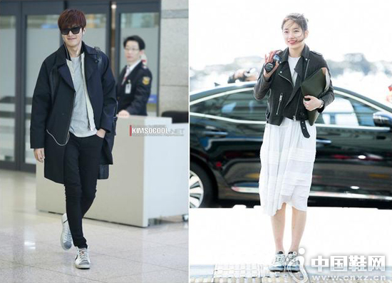 翻一翻敏镐欧巴和秀智的街拍,即使他们分别单独出行,在穿搭上也总有着情侣间低调又甜蜜的小默契:衣服总在换,同款球鞋总在穿!