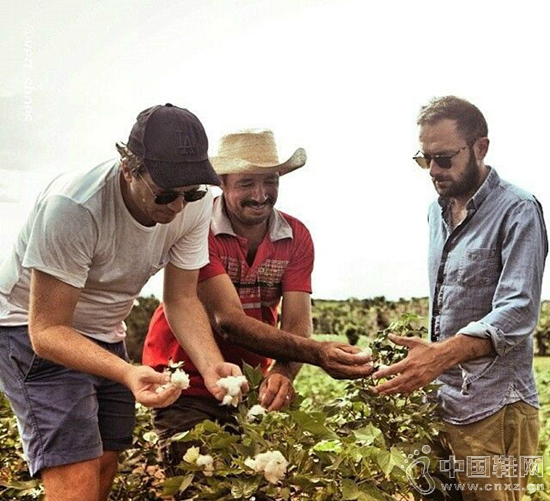 两位创始人(最左、最右)在巴西选择棉花原料