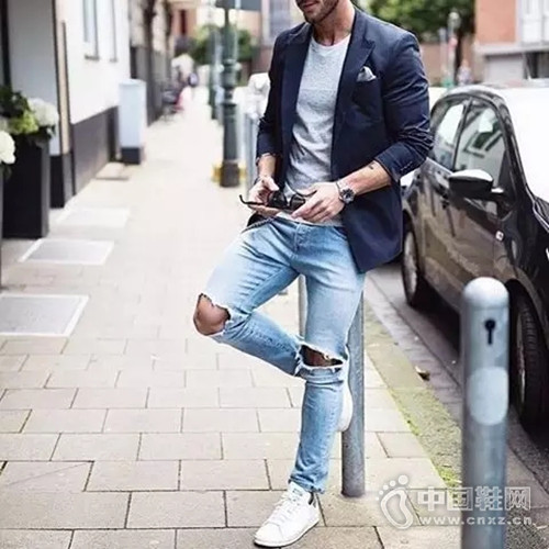 最基本的搭法就是选择海军灰(包括深色和浅色)或各种深浅色系西装,如果整体风格想看起来随意,休閒鞋搭配条纹西装、米色斜纹格子或是粗花呢都是不错的选择。
