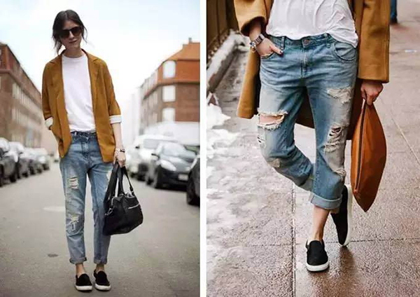 牛仔裤搭配懒人鞋,不仅清新自然又耐看。