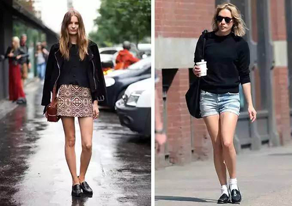 短裤短裙搭配乐福鞋都不是问题,配上白袜有一点复古的风格。