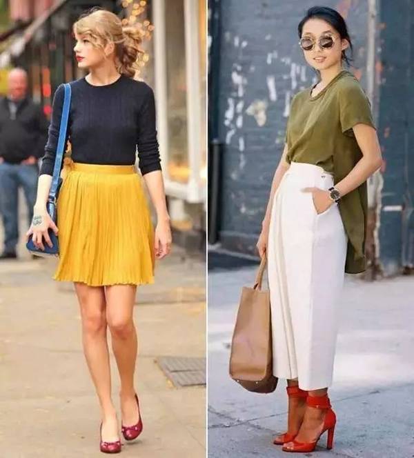 使鲜明的色彩互相碰撞,既不冲突又十分抢眼,内搭的上衣和包包也可以选择红色来与鞋子呼应,使你看起来热情又活泼