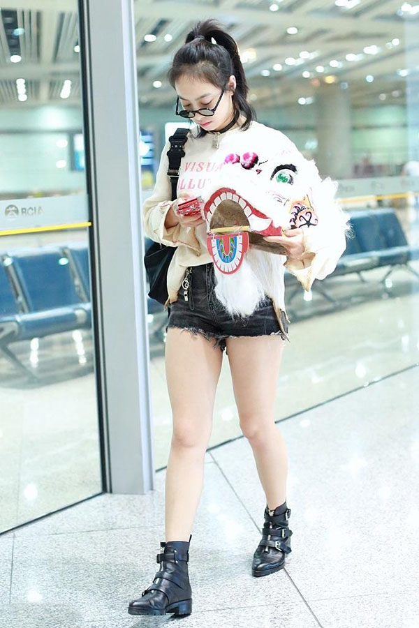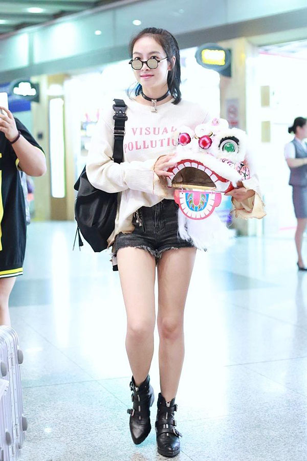 08月15日讯,近日,宋茜机场街拍。她梳高马尾,戴银色镜面墨镜,戴黑色锁头Choker,身穿白色字母印花荷叶袖毛边卫衣,肩背黑色双肩包,下穿黑色毛边牛仔短裤,脚踩黑色系扣短靴。