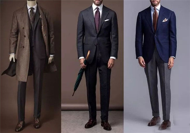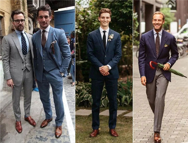 棕色鞋适应性很广,比较正式的三件套、二件套装,以及单件西装夹克都可以完美搭配,只要颜色不要过浅即可。