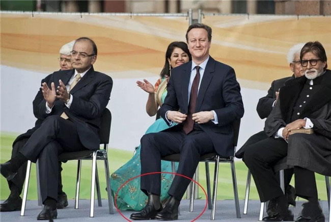 喜欢穿切尔西靴的前英国首相卡梅伦在正式场合也这么穿,虽然理论上是可以,但还是有些失礼。