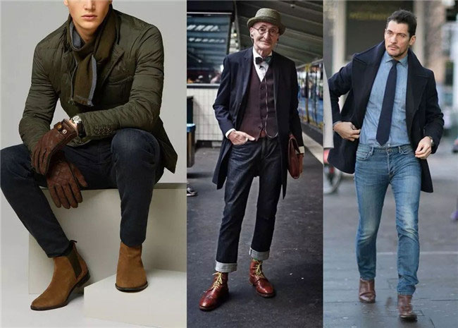 尤其是切尔西靴,如果与裤子颜色相近可以使得你的腿很长,且适用场合广泛。
