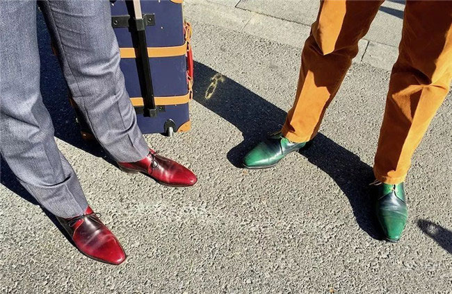 彩色和擦色的鞋子,除了法国的Berluti和Corthay,其它都实难入眼。而全球大概也只有Corthay可以称之为最好的彩色皮鞋。