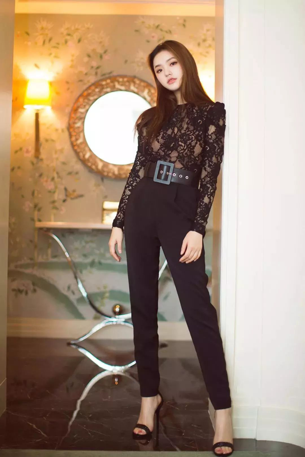 年轻的林允除了有着令人称赞的演技还有美貌,这样一身黑色套装,搭配一双黑色一字带凉鞋,别说有多高级了,看着也是很女神呢!