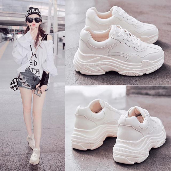 百搭超火老爹鞋潮原宿透气运动,很喜欢穿这种运动鞋,逛街日常出去玩再时尚不过了,休闲风十足的老爹鞋,是各路明星和网红喜受的鞋工,不管出现在哪里,都能引起一群人的注意,吸睛养眼,久走久站不会累脚。 小白鞋是经典时尚的代表。这又是一款非常有潮味儿的小白鞋。有一些厚底的增高,显高显瘦的效果。