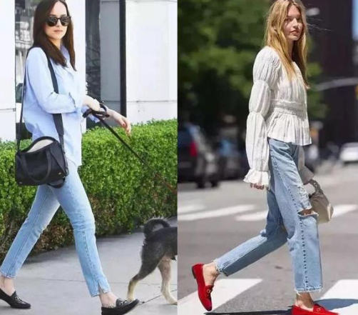 乐福鞋是一种非常复古并且有质感的鞋类,而牛仔裤又是历经几十年而没有衰落的经典款,简约舒适的乐福鞋和永远霸占着时髦前列的牛仔裤搭配起来既能够有十足的复古感,但又看起来随性自然,而且牛仔裤的多种版型能够修饰各种各样的腿部缺点,能够让脚踝露出来的乐福鞋又让人看起来纤细,整体十分的有腔调。