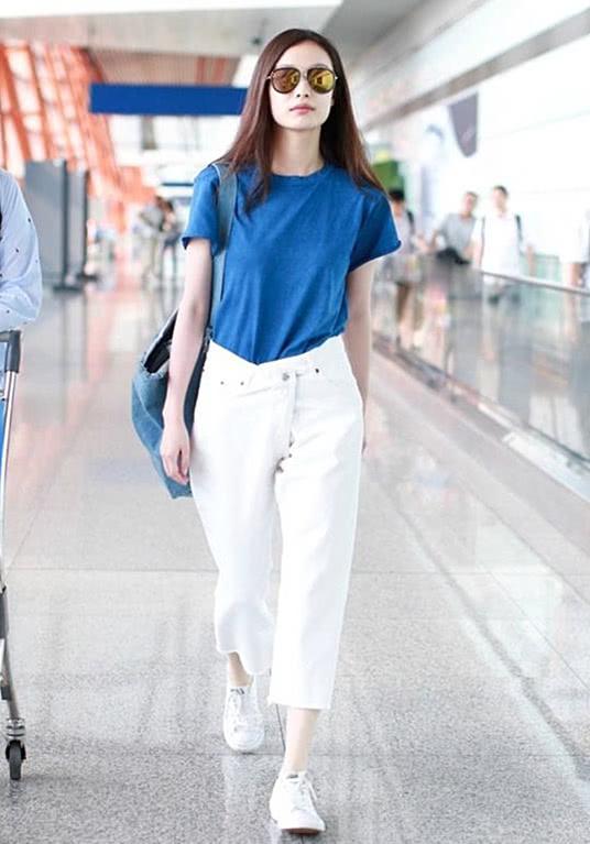 帆布鞋不论搭配什么都带恰好的融入整体的look里,倪妮更是将白色帆布鞋穿出了休闲风格,用蓝色短袖T恤搭配高腰的白色阔腿裤,清清爽爽的蓝+白搭配,露出小腿,脚踩小白鞋,尽显休闲个性,不得不说帆布鞋是一年365天都可以穿的最in单品呢。