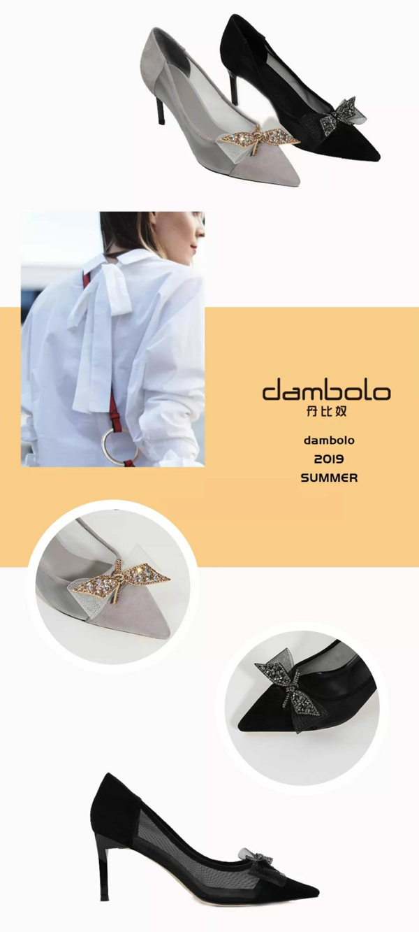 确认过眼神,丹比奴这双鞋子就是你想要的style。这款拼接薄纱的时尚尖头鞋一定能给予你美好的感觉,搭配网纱和金属钻饰相结合的蝴蝶结装饰,强大的气场中带着几分少女感,职场和日常同样适合。