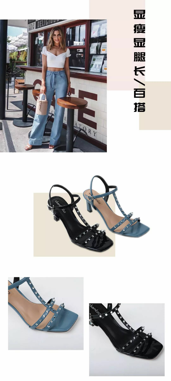 在充满热情的夏日,人人都爱一字带凉鞋,爱它的舒适时髦,更爱它满满的夏日风情。区别于普通的一字带凉鞋,复古的方头,精致的透明鞋跟,一字带上还镶嵌着彩色铆钉,怎么穿怎么美,搭配一条美裙穿着,你才是夏日里最好看的风景。