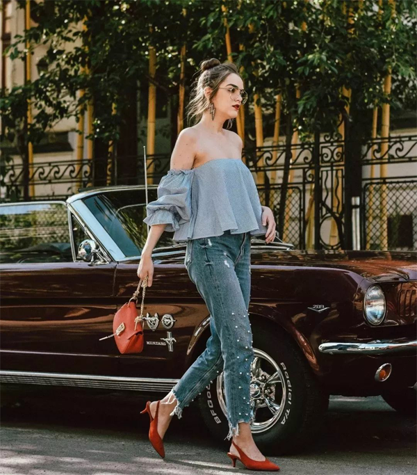 高跟鞋虽美,但不是任何人都可以轻松驾驭的,粗跟绝对是她们的福音。粗跟的Slingbacks会稍微显得更加可爱亲切一点,又比较好驾驭,当然也很百搭,随便搭配牛仔裤穿着,都是好看到飞起的那种,稳赢!