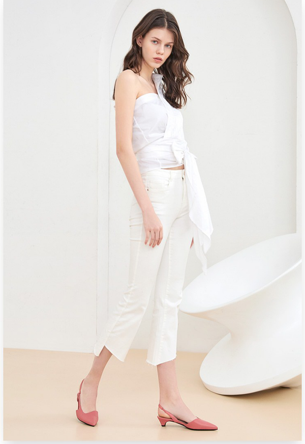 自带少女气息的粉色毫不费力便可打破穿搭的沉闷感,施展灵动甜美的魔法。以简约的白衣白裤搭配本季这款浅粉低跟凉鞋,每一步都仿似行走在梦幻的夏日花园里,动人鸟鸣萦绕不绝,粉嫩蔷薇焕发生机,夏天便是一点点温柔的粉色加上踏着妙丽的你微微一笑。