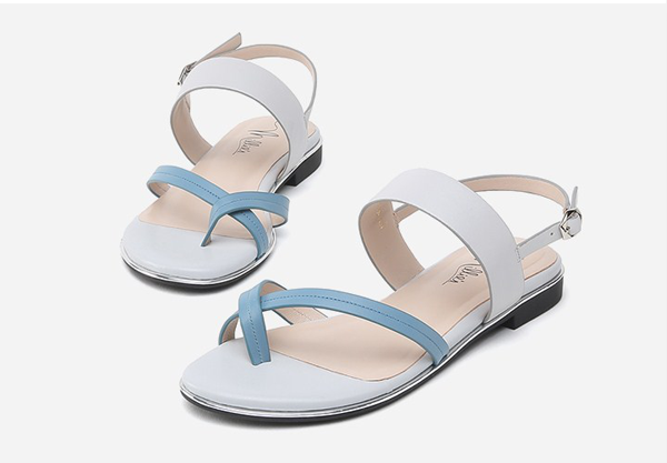 交叉的条带设计洋溢着复古罗马绑带风,奇妙地在过去、现在和未来之间构筑平衡。鞋面条带纯净的蓝,混搭脚踝处一字带的空灵之白,如同夏季蔚蓝的天空和漂浮其上的柔软的云,大方的撞色赋予这款凉鞋神秘雅致之感,舒适平跟成就刚柔并重的独特韵味。