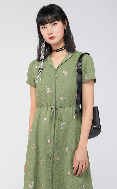 花卉刺绣+天丝提花面料,融合不对称褶皱设计,打造简约而不简单的造型。爽滑轻薄的触感,给予你舒适的穿着体验。