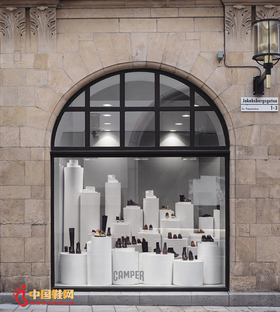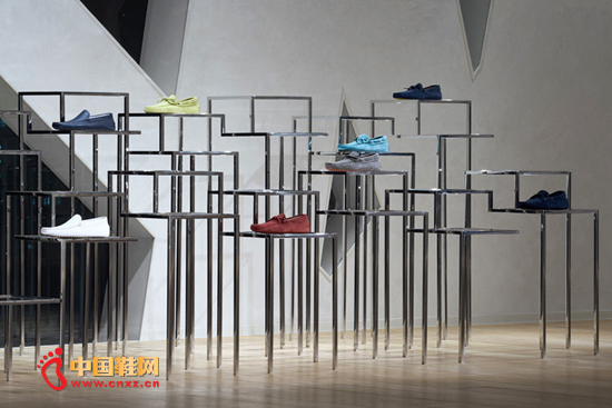 赶巧的是,就在本月初,Nendo 为另一家品牌 Camper 设计的斯德歌尔摩零售空间也刚刚亮相,用的则是卷纸状结构的一个个错落有致的柱子,用来展示鞋子。每个展台的鞋子下方都隐藏着 LED 灯,发出漫射的光线,进一步烘托出 Camper 鞋子的三维立体感与轻质的特点。(中国鞋网-最权威最专业的鞋业资讯中心。合作媒体: )