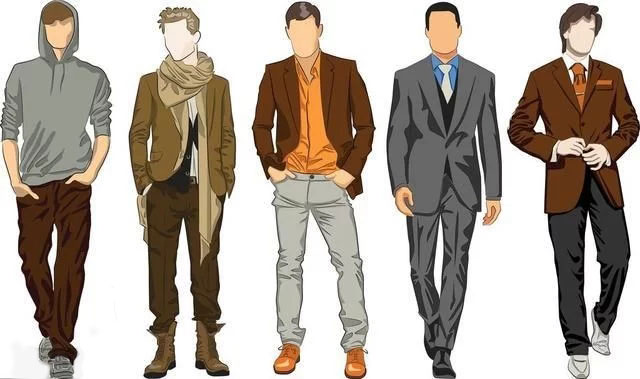 根据人的量感和线条曲直,男士人物风格分为6种:阳光前sao卫nian,自然,古典,新锐前卫,浪漫,戏剧。下面这张图来自西蔓的很老的一本教材,里面只分了5种风格,没有阳光前卫型,跟现在的区分方法已经有些不一样了。